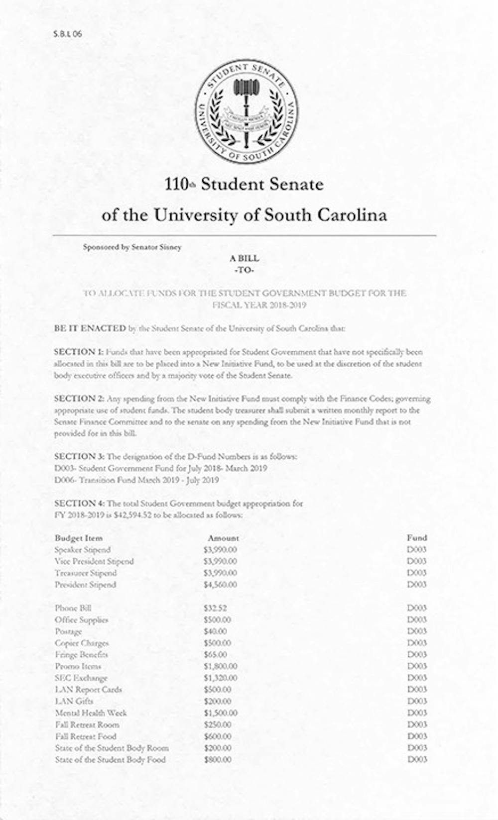 Editor's Note: This article was edited to clarify that Lang is not involved in Senate Finance Committee decisions involving the Mock Trial Team and reflect additional documents provided to The Daily Gamecock after publication regarding Mock Trial Team's allocations as of Nov. 9, 2018.