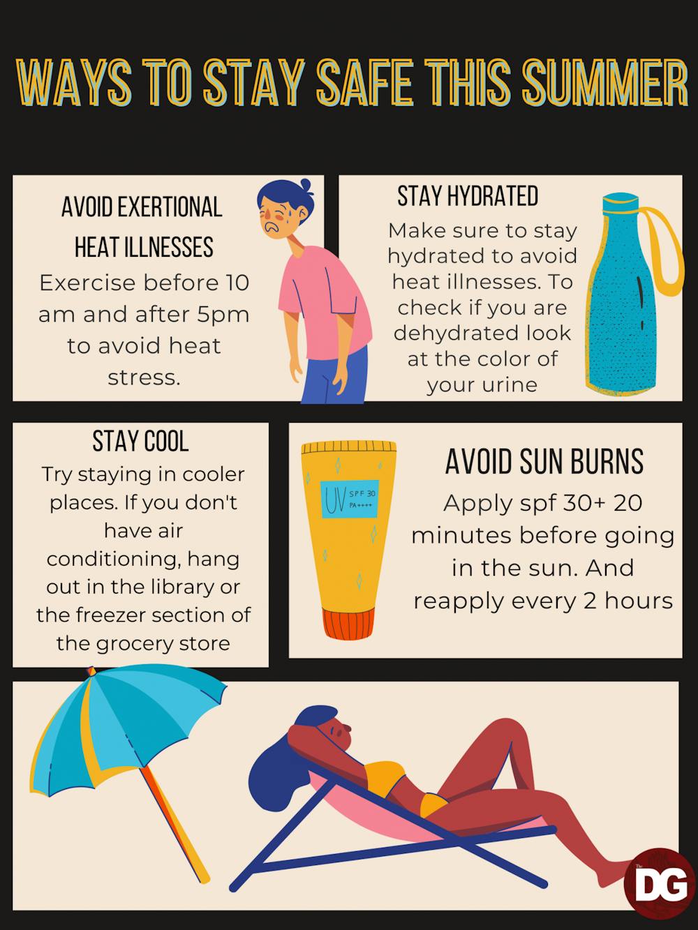 Temperatures have risen above 100 degrees in Columbia and have left us to simmer in the heat. Despite the sun beating down on us, we shouldn't let that ruin our summer. It is important to be prepared and avoid the sun damage and heat illnesses that these new heat waves can bring us.