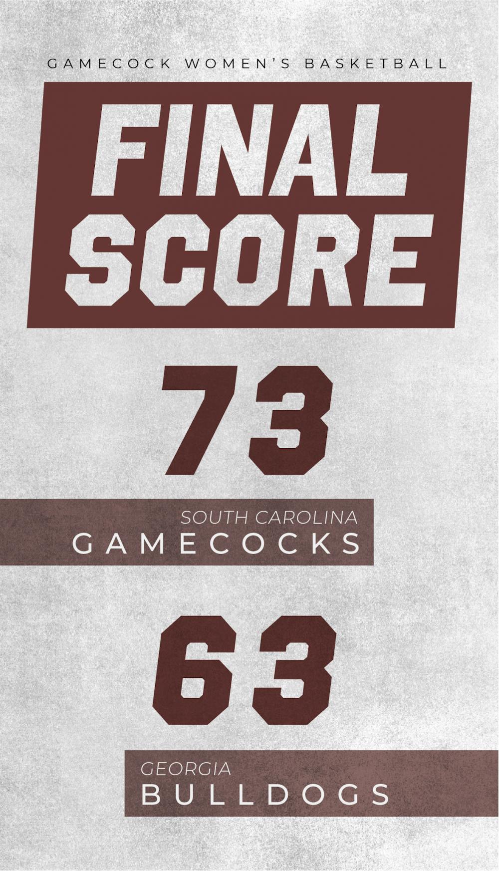 The No. 1 South Carolina women's basketball team maintained its 35-game home win streak and undefeated 2022-2023 season with a 73-63 win over Georgia in its home finale on Sunday afternoon.