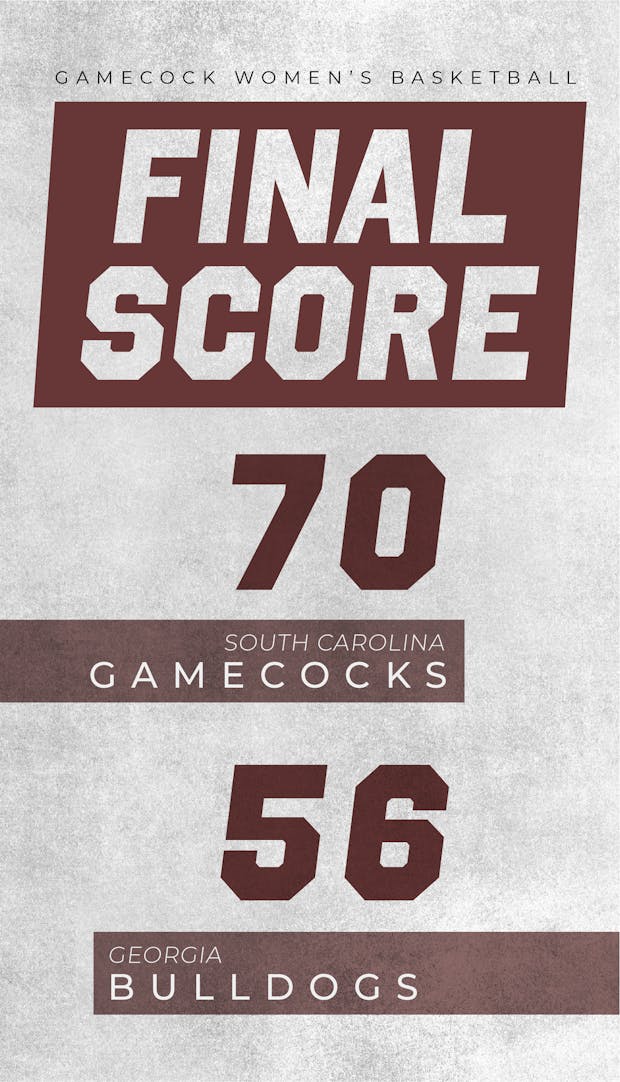 The No. 1 South Carolina women's basketball team overcame a 7-point deficit at halftime to defeat the Lady Bulldogs 70-56 and pick up its 25th win of the season on Sunday.
