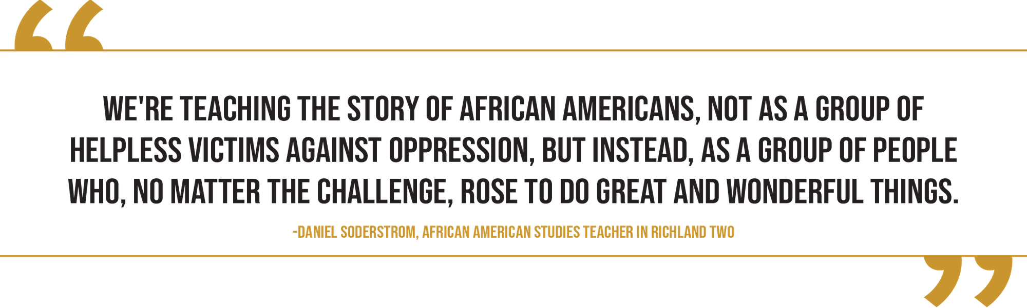 Daniel Soderstrom, an African studies teacher at Ridge View High School in Richland Two, said the class' subject matter extends from ancient African history to the present day in the United States.