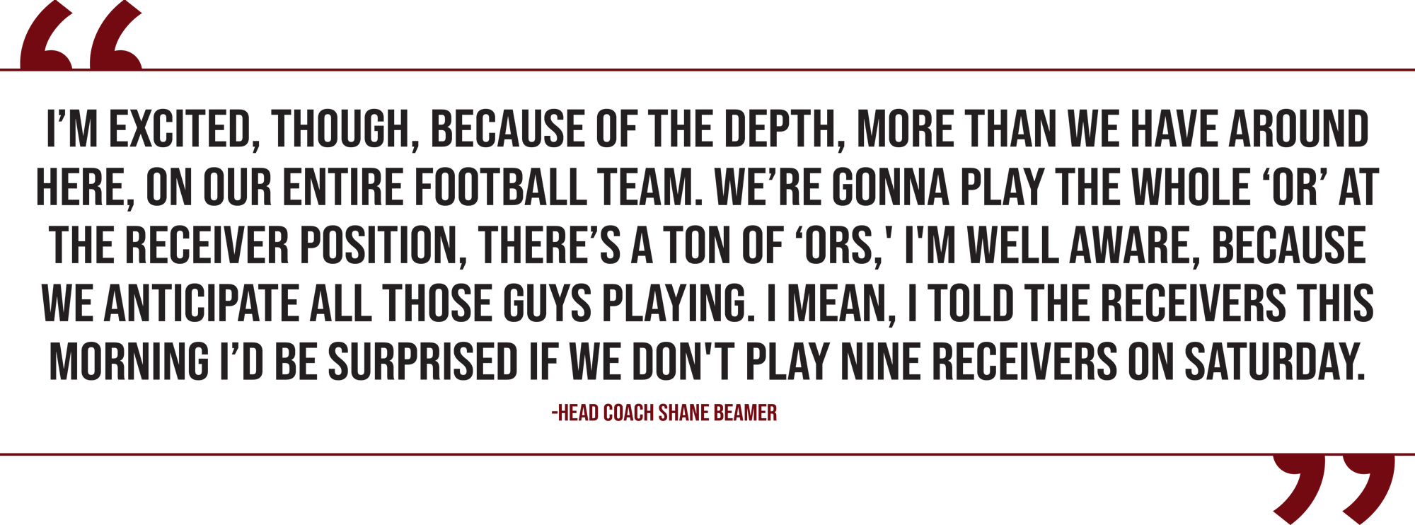 Beamer shared excitement in the Tuesday press conference for the wide receiver group that surrounds his young quarterback. He expects to play them all on Saturday.