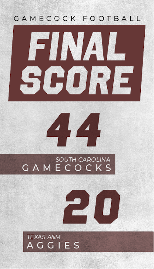 South Carolina football wrapped up the university's homecoming weekend with a 44-20 upset win over No. 10 Texas A&M Saturday night at Williams-Brice Stadium.