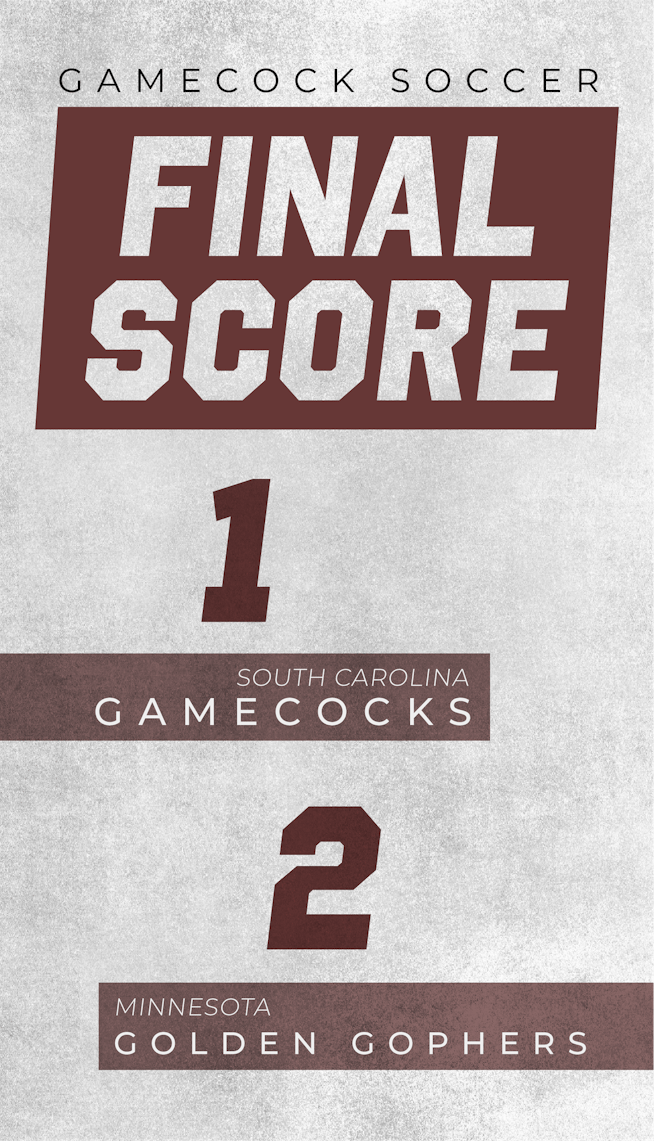 South Carolina pushed hard to equalize over the final 20 minutes of the match with several shots on goal but couldn't find the back of the net. The game ended with Minnesota winning 2-1, with the Golden Gophers outshooting the Gamecocks 16-15 over the course of the match.