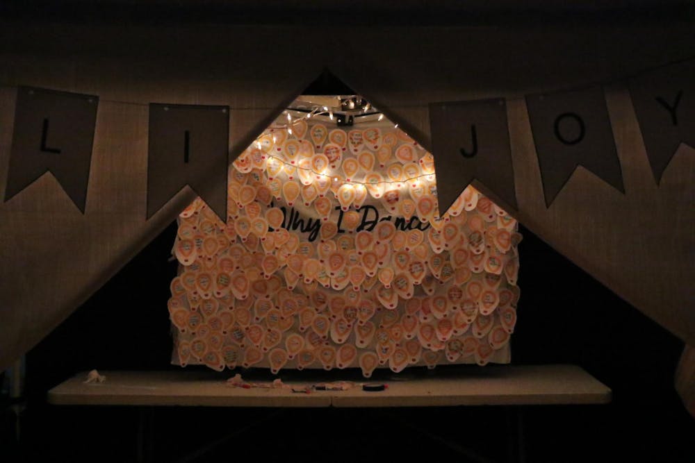 A “Why I Dance” board on display during the USC Dance Marathon’s main event on Feb. 24, 2024, at Strom Thurmond Wellness and Fitness Center. During the event, students wrote the names of people on the board who have battled sickness and inspired their involvement in the fundraiser.