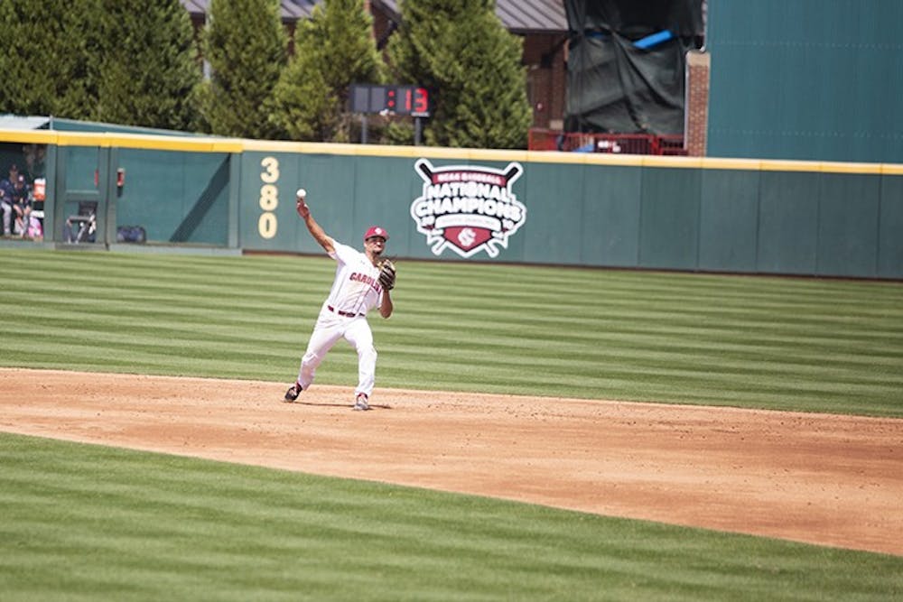 Sophomore Noah Campbell throws the ball to first during the second game against Auburn at Founders Park on Saturday.
