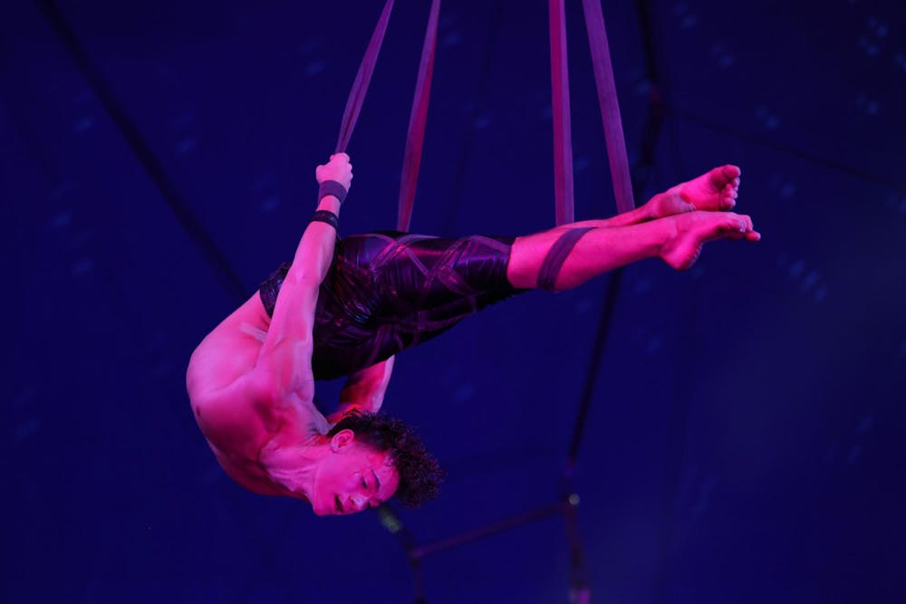Aidan Bryant spins in the air as part of an aerial act during the “Circus at the Fair” event at the South Carolina State Fair on Oct. 12, 2024. Byrant, a famous aerialist, received a golden buzzer on America's Got Talent Fantasy League and placed first in America's Got Talent All-Stars.