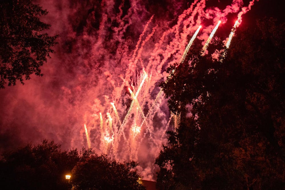 Fireworks are set off on the top of Russell House during First Night Carolina on Aug. 23, 2023. During the show, students gathered across Greene Street to watch the display and enjoy other free activities.