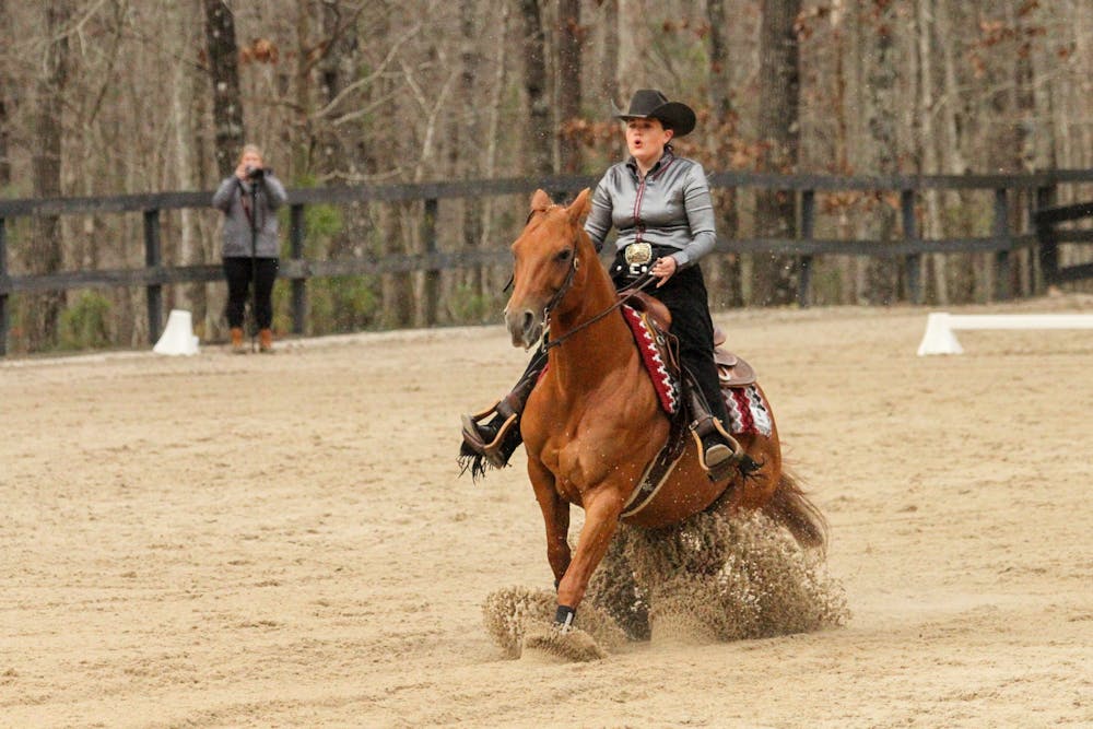 Senior Mary Margaret Coats, mounted on Chexie, competes in the reigning category during the meet against Texas A&M at One Wood Farm on Feb. 11, 2023. One of her favorite memories from competing for the University of South Carolina over the past four years was celebrating Senior Day. “It’s really because all the parents come out, (and) everyone is screaming as loud as you possibly can. We’ve had some crazy wins on Senior Day and it really just makes you realize how appreciative we are of everyone on the team,” Coats said.