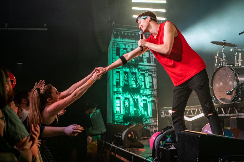 Matt Johnson holds hands with a fan during a song at their concert at the Senate in November 2019. Johnson interacted with individual fans multiple times throughout the show.