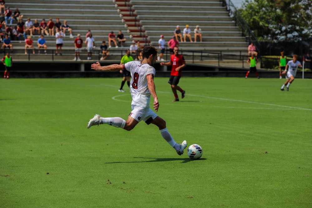 Sophomore midfielder Ethan Dekel Daks fires the ball downfield late in the game against Gardner-Webb. The Bulldogs beat the Gamecocks 2-0 in South Carolina's home opener.