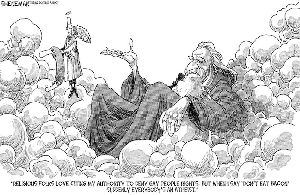 First, I do not disagree with the opinion expressed, as I am one of those "religious folks" who not only eats bacon, but has spent my adult life and ministry affirming and promoting the rights of others in the LGBTQ communities.