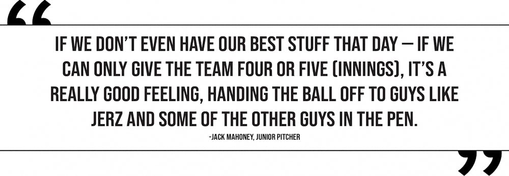 “It makes us feel a lot better,” junior pitcher Jack Mahoney said. “If we don't even have our best stuff that day — if we can only give the team four or five (innings), it’s a really good feeling, handing the ball off to guys like Jerz and some of the other guys in the pen.”