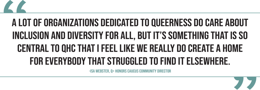 “A lot of organizations dedicated to queerness do care about inclusion and diversity for all,” Webster said. “But it’s something that is so central to QHC that I feel like we really do create a home for everybody that struggled to find it elsewhere.”