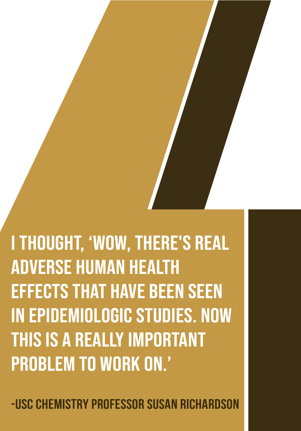 Richardson works with USC's Institute for Clean Water, a team of researchers who work together to identify and understand the effects of chemicals on drinking water. The Institute for Clean Water was founded two years ago by biology professor Tammi Richardson, who now serves as director.