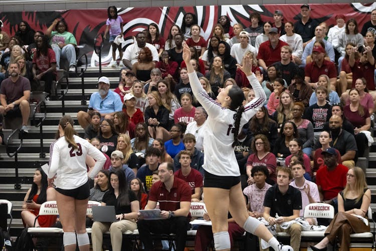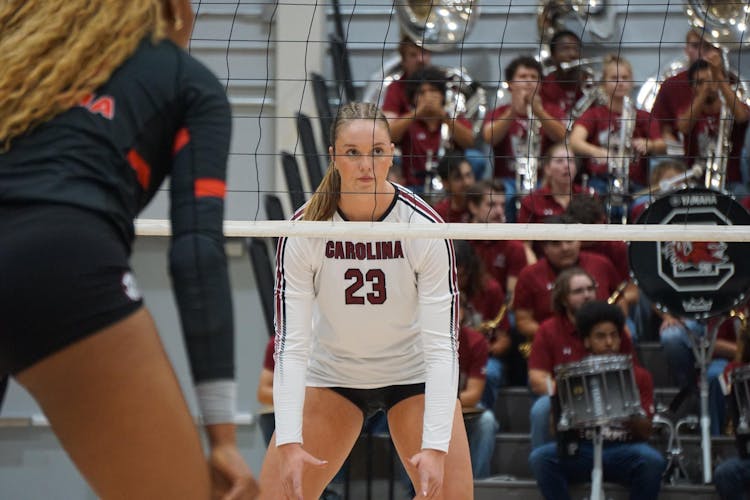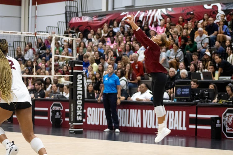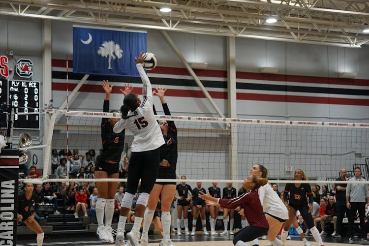 Service aces from sophomore libero Victoria Harris, kills from Johnson and blocks from Marchal and junior middle Ava Leahy allowed the Gamecocks to surge ahead, winning the set 25-12 shortly after.