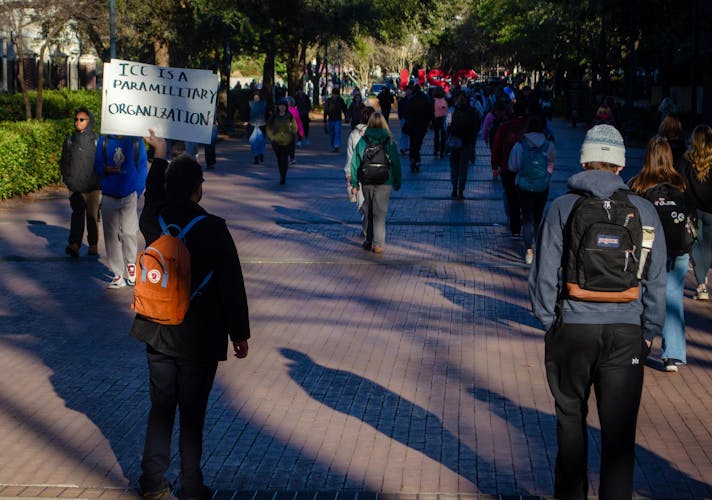 Second-year social work student Quinnie Mustian said the purpose of both the walk-out and protest was in response to recent Trump administration actions and events in Minneapolis.