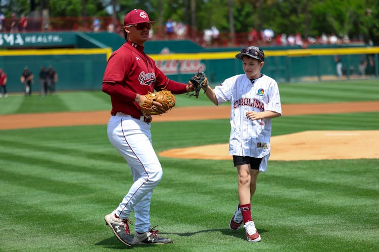 Ahead of Gamecock baseball's second game of the series, Gabriel stopped by the Cocky statue on campus before heading to Founders Park for the game. Junior pitcher Alex Valentin escorted Gabriel out to the pitcher's mound, and he was able to throw the game's first pitch.