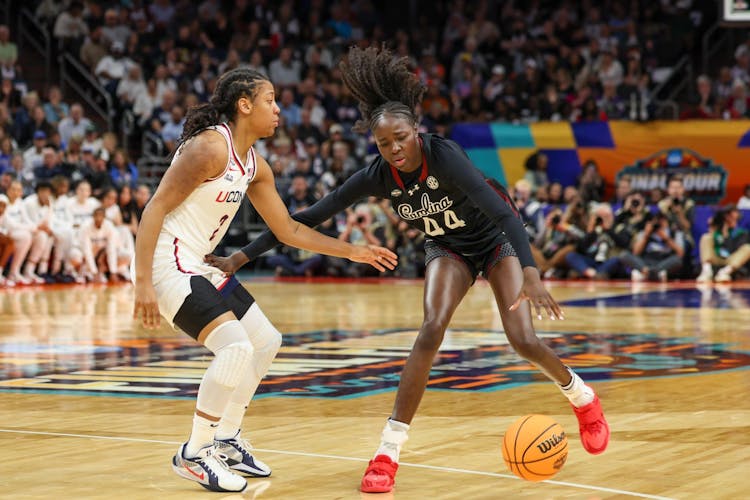 To start the game, South Carolina won the tip, and senior guard Ta’Niya Latson immediately got to the rim for a layup and the Gamecocks’ first lead of the day. The Huskies were stopped at the other end, but South Carolina was called for a shot-clock violation after getting the ball back.