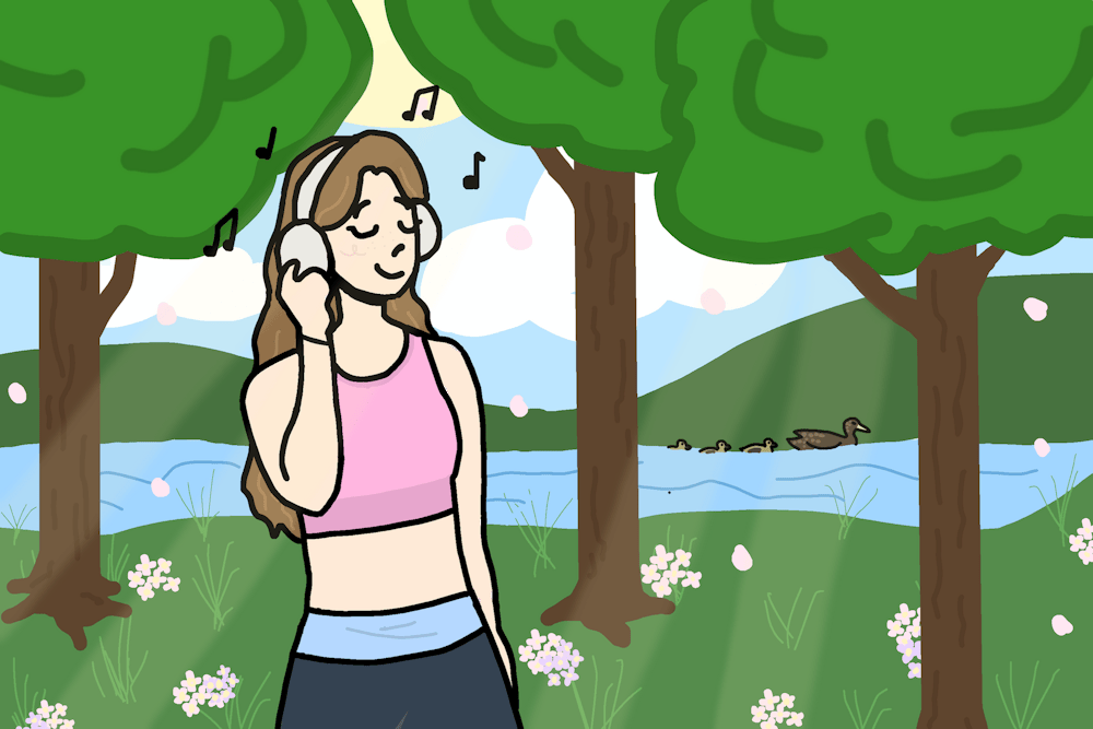Lately, we all have things or deadlines that we feel are creeping up on us. Whether it's graduation, final exams or moving out, whatever is worrying your already busy mind can be calmed by a simple walk outdoors–and a great playlist to listen to.