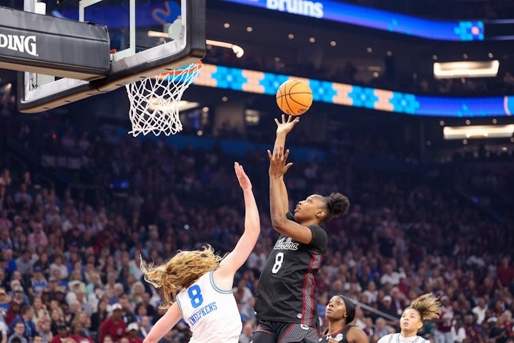 The Gamecocks opened the second quarter with a missed layup, their third of the game. The Bruins went right down the court and scored to push the lead to 13, the largest deficit South Carolina had faced in the tournament at any point.