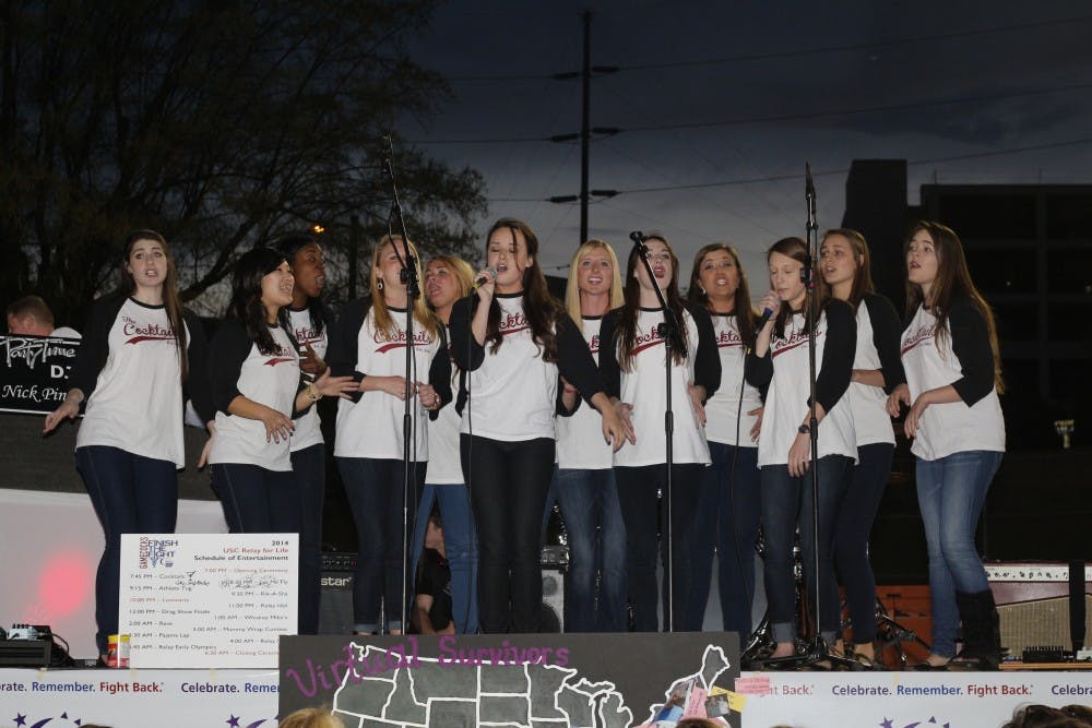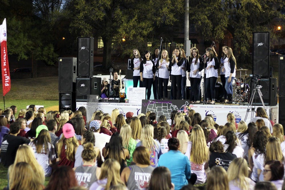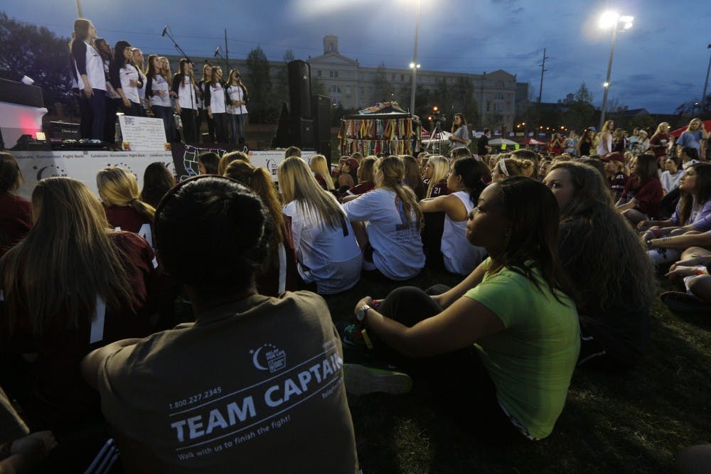 2014 Relay For Life Emily Cray (have no way to know if spelling is correct), 1 year cancer free from breast cancer, Nursing student, first time telling her story