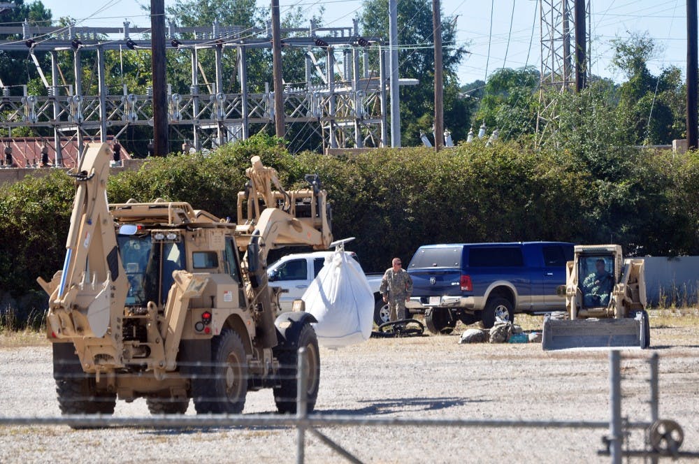 Member of the National Guard takes a moment to rest at the Bi Lo parking lot on Forest Drive, October 6.