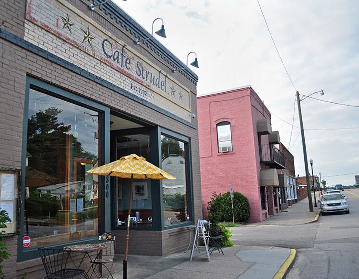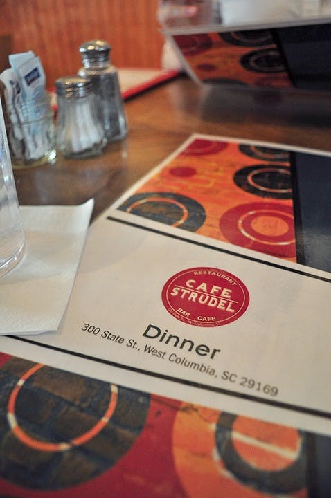 Cafe Strudel Dinner at Cafe Strudel, a sweet little cafe in West Columbia. Lemon-berry mascarpone cake Cheers! The all-important apple strudel Apple strudel, lemon-berry mascarpone, and jasmine tea with honey Seafood mac-n-cheese with goat cheese, scallops, tender shrimp, and bacon shreds Chicken piccata with roasted cauliflower, English peas, and red onions Duck nachos with a sweet chili gruyere sauce Starter salad with a big ol’ bagel crouton The all-you-can-drink, self-serve coffee bar featuring rotating roasts