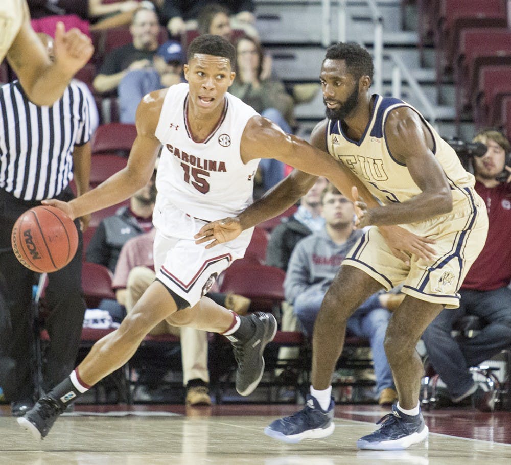 Men's basketball vs Florida International University The Gamecocks take the win against Florida International University, 70-54.