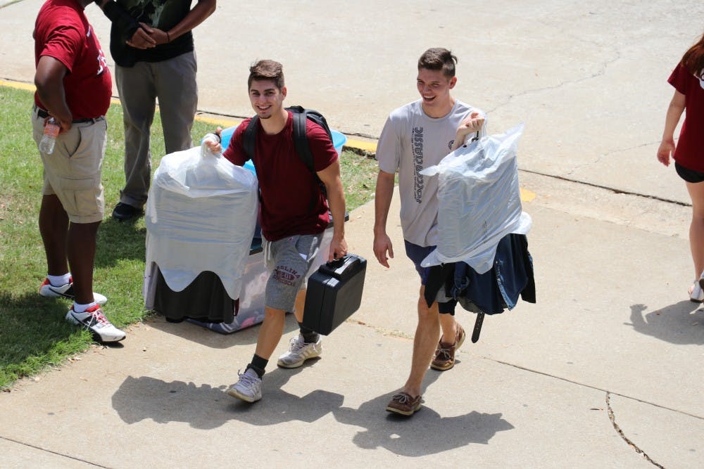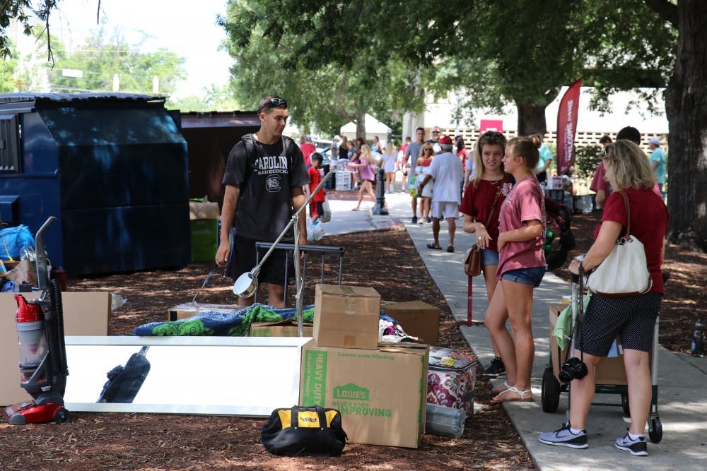 Move-In Day 2017 Terri Cox is dropping of her daughter Tessa at the Honors Residence Hall. Parents help move their children in to residence halls around campus. Sofia Bernardo's mom waits outside Capstone while her daughter checks in.