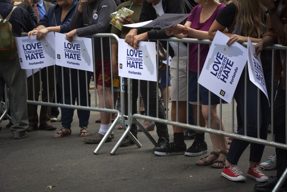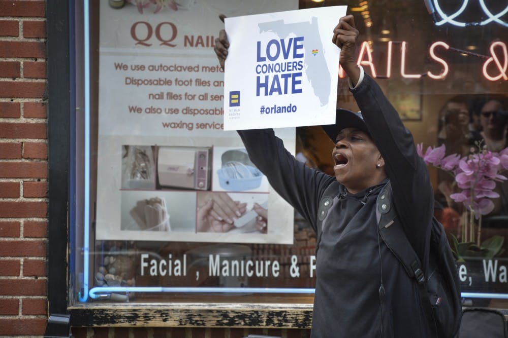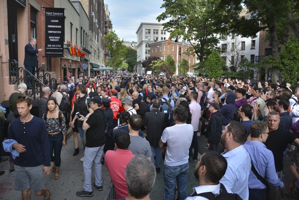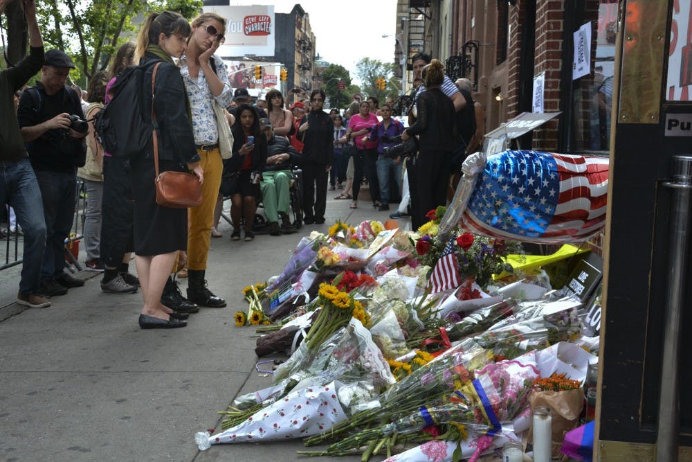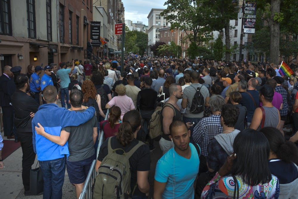 Mourners hold a vigil Monday night at The Stonewall Inn in New York, a national historic landmark due to its role in the LGBT civil rights movement. Sunday's massacre at Orlando's Pulse nightclub has led to an outpouring of grief and support all around the United States. The attack on the gay bar was the worst mass shooting in U.S. history.