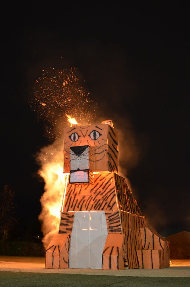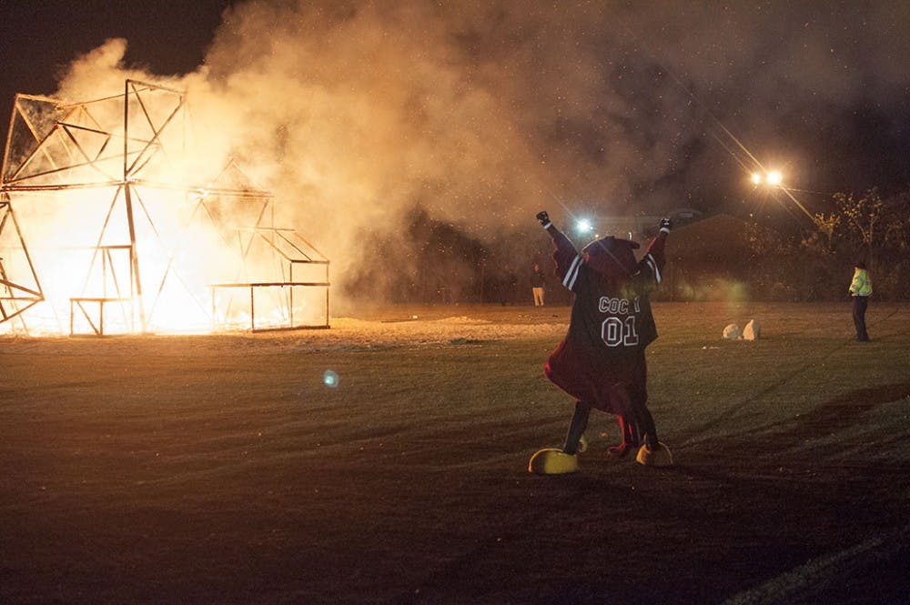 The annual Tiger Burn took place at Greene St. intramural fields on a chilly Monday night. Hundreds of students gathered to watch the tradition of burning a wooden tiger to the ground, celebrating the longstanding rivalry between USC and Clemson. Cockapella, Swipe, Alpha Kappa Alpha, and Iota Beta Sigma gave live performances before the tiger was ignited.