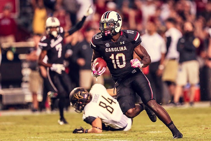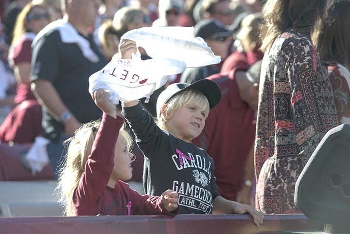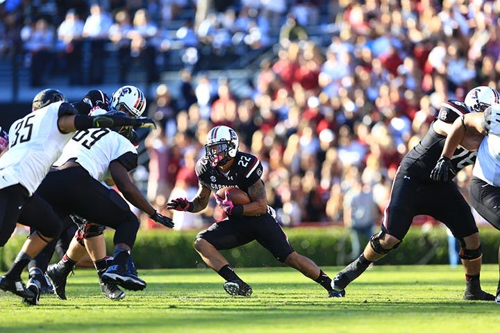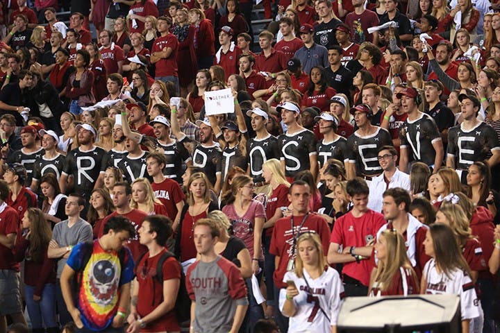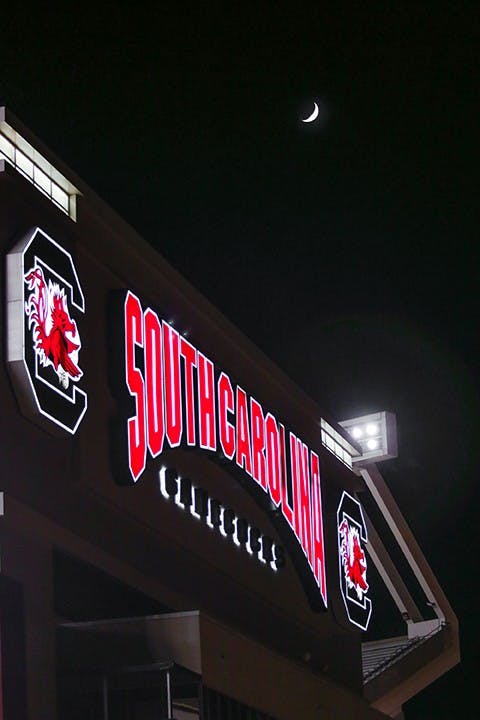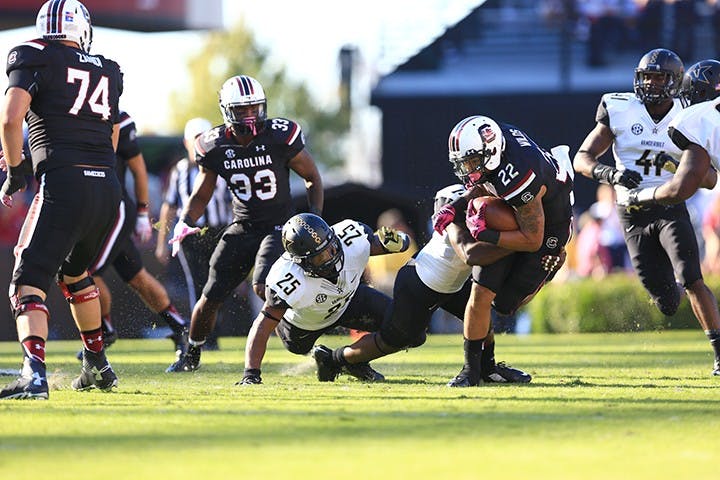 USC vs Vanderbilt Football Head Coach Shawn Elliott rushes out with the Gamecocks. This was Elliott's first game as Head Coach.