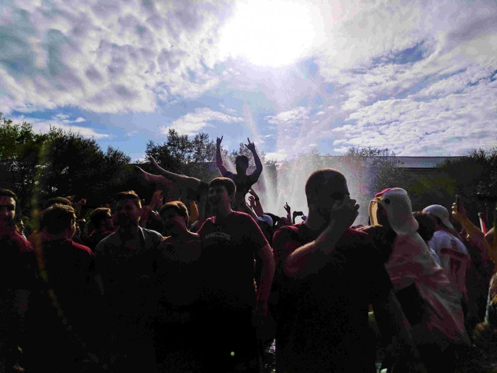 Students jump in the fountain to celebrate the Gamecocks men’s basketball team beating Florida in the Elite Eight and securing its place in the Final Four in 2017.