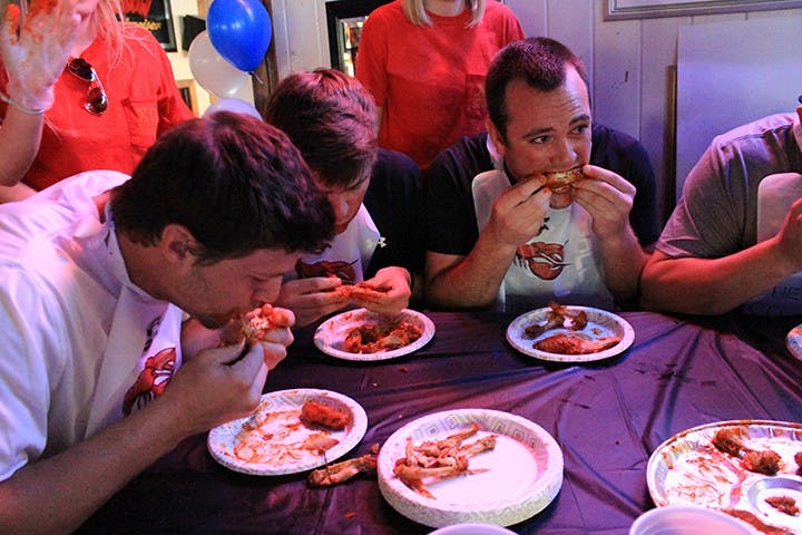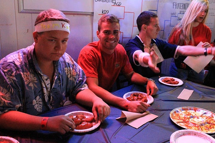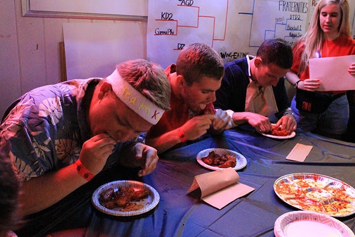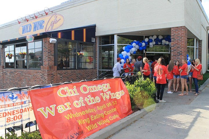 Chi Omega War of the Wings Chi Omega sorority hosted its annual War of the Wings competition Wednesday at Wild Wing Cafe, where teams of students ate as many chicken wings as they could. Money raised for the event was donated to the Make-A-Wish Foundation.
