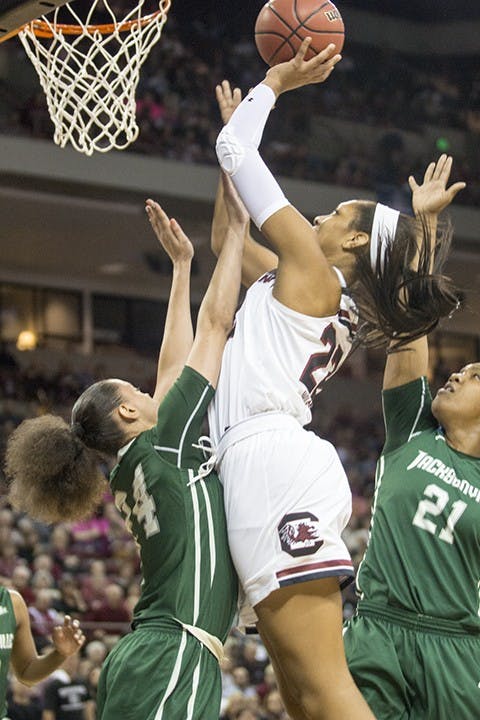 Women's Basketball vs Jacksonville University Women's basketball faced Jacksonville University in the first round of the 2016 NCAAW Tournament on Friday, March 18. Final score: South Carolina 77, Jacksonville 41. Gamecocks will play Kansas State at CLA at 7 p.m. Sunday, March 20.