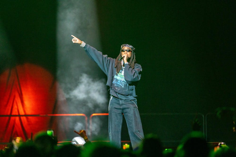 Quavo performs one of his songs in front of a crowd of students at Colonial Life Arena on Jan. 29, 2025. The rapper was the headlining performer for the annual Cockstock concert.