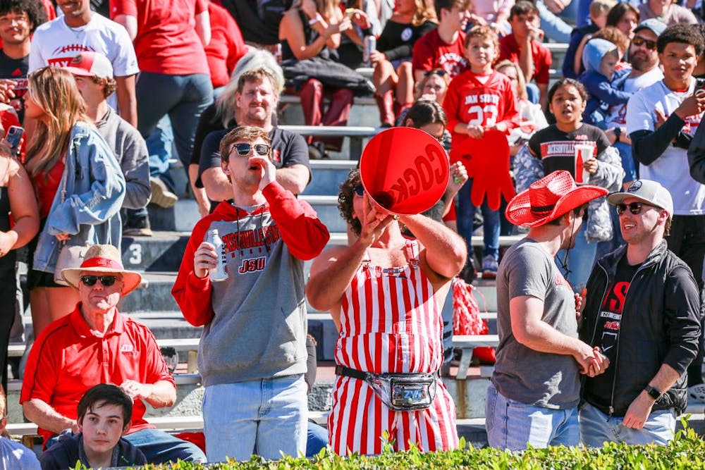 Jacksonville State Gamecocks fans cheer during the matchup against the South Carolina Gamecocks at Williams-Brice Stadium on Nov. 4, 2023. Jacksonville State stayed neck-and-neck with South Carolina for the first half of the game, but trailed behind in the second half after several overturns by the South Carolina defense.