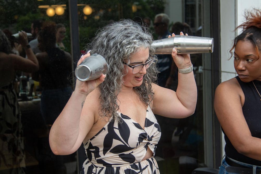 Rachel Mendez, a bartender at the Moxy Hotel, shakes drinks during the first round of the Capital City Cocktail Competition on June 9, 2024. The second annual event featured three rounds for attendees and judges to taste.