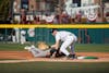 Sophomore infielder KJ Scobey tags out an opposing player during the game against Northern Kentucky on Feb. 13, 2026. Scobey recorded two putouts.