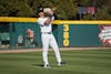 Sophomore first baseman Beau Hollins getting in position for a pick-off attempt during a game against Northern Kentucky on Feb. 14, 2026, at Founders Park. Hollins had a hit and a walk in the game.