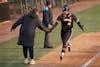 Senior infielder Arianna Rodi high-fives a coach after scoring during South Carolina's game against Winthrop on Feb. 8, 2026, at Carolina Softball Stadium. She crosses home plate in the Gamecocks’ 18–0 win.