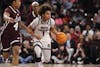 FILE — Sophomore guard Maddy McDaniel dribbles the ball up the court in the Gamecocks’ matchup against Mississippi State University on Feb. 5, 2026. The Gamecocks defeated the Bulldogs with a final score of 88-45.