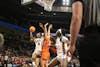 FILE — Sophomore forward Joyce Edwards goes for a layup over a defender against Clemson University on Nov. 11, 2025, at Colonial Life Arena. Edwards finished with 18 points to help the Gamecocks secure their 65-37 win against the Tigers.