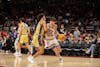 Senior guard Raven Johnson maneuvers around a screen during the game against Georgia on Jan. 11, 2026. Johnson had eight defensive rebounds and scored 10 points.