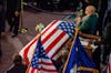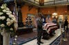 The casket of the Rev. Jesse Jackson, covered by the American flag, lies in state in the South Carolina State House on March 2, 2026. The Jackson family’s request that he lie in state at the United States Capitol in Washington was denied.
