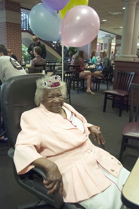 Vertell Jackson, better known as Lil’ Mama, sat in the middle of Russell House, posing for photos with a “Happy Birthday” tiara on her head.