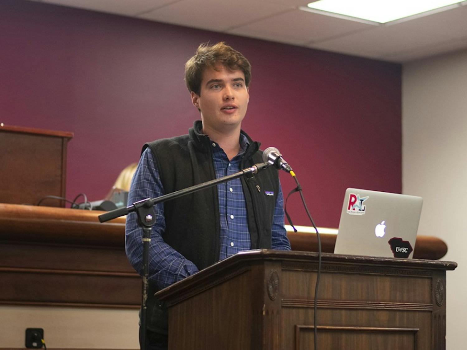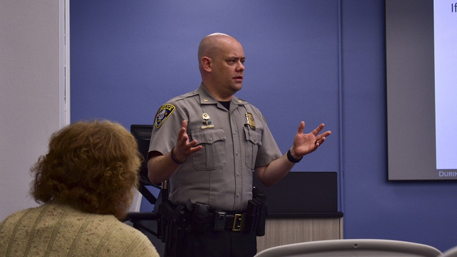 By Kailey Cota | Oct. 29, 2019Major Irick “T.J.” Geary, the operations bureau commander of the USC division of law enforcement and safety (LES), taught the USC community what to do in the event of an active shooter Tuesday afternoon in the Thomas Cooper Library.