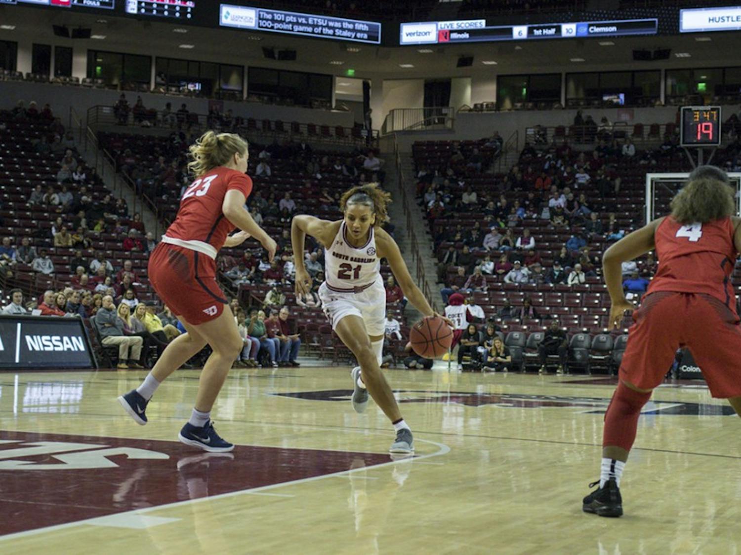 By Matthew Edwards | Jan. 28, 2019South Carolina women’s basketball (14-5, 6-1 SEC) defeated the Vanderbilt Commodores (6-14, 1-6 SEC) 80-69 at Colonial Life Arena on Monday after overcoming first half struggles.