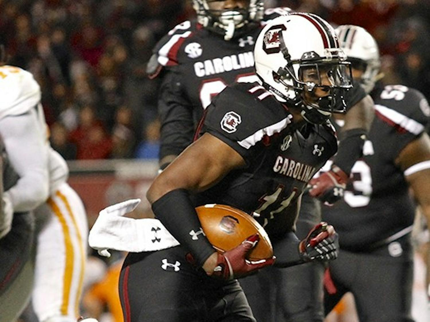 By David Roberts | Nov. 18, 2014Despite attempting 41 passes — the second-highest total of his career — redshirt senior quarterback Dylan Thompson threw for a season-low 206 yards. The only game in which Thompson attempted more passes was the meeting with Auburn in October, when he completed 29 of 50 passes for 402 yards.